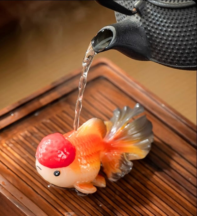 This charming goldfish figurine sits on your tea tray and transforms with each pour of hot tea, gradually developing a richer, more colourful appearance.