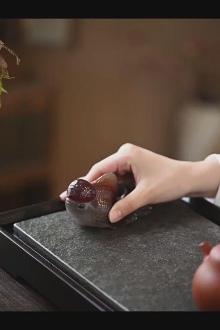 Bring tradition and good fortune into your tea rituals with the Castle Dawn Aquatics Colour Changing Red Cap Oranda Goldfish Tea Pet. Steeped in history, tea pets have been cherished by Chinese tea drinkers since the Yuan dynasty (1206–1368) as symbols of luck and companionship during tea time.